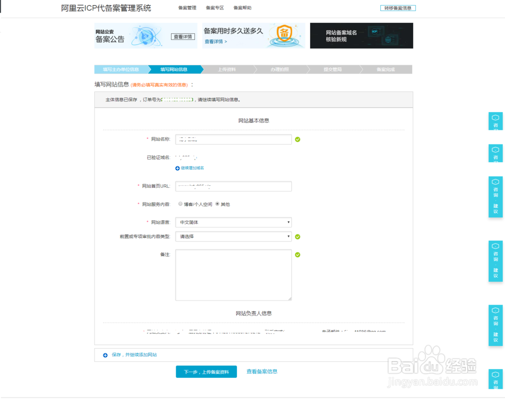 注意:这里的联系人电话,不能在其他主体的域名备案中使用过。即一个手机号只能被一个主办单位的备案使用。